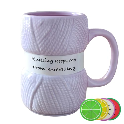 Treer Ceramic Coffee Cup, Creative Knit Coffee Cups Coffee Mug with Handle 425ml/14.4oz Coffee Cup Cappuccino Cup Tea Cup, Gifts for Valentines Mothers Day Friend Teacher Birthday (Purple,1 Piece)