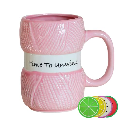 Treer Ceramic Coffee Cup, Creative Knit Coffee Cups Coffee Mug with Handle 425ml/14.4oz Coffee Cup Cappuccino Cup Tea Cup, Gifts for Valentines Mothers Day Friend Teacher Birthday (Pink,1 Piece)