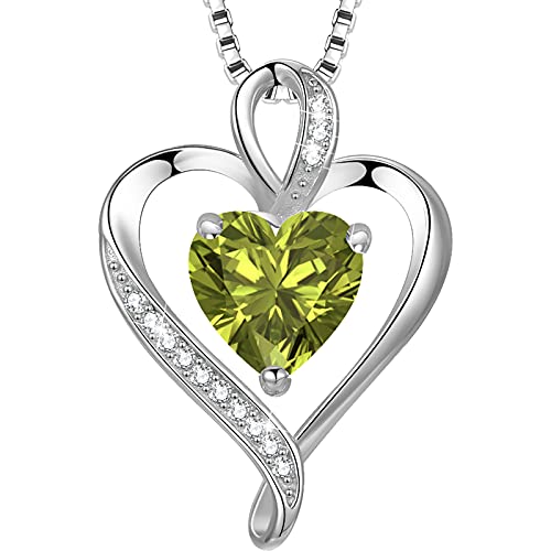 LAVUMO Heart Necklace for Women Real 925 Sterling Silver Love Cubic Zirconia Pendant Brithstone Necklace Valentines Birthday Jewellery Gifts for Women Wife (Silver-08- Peridot)