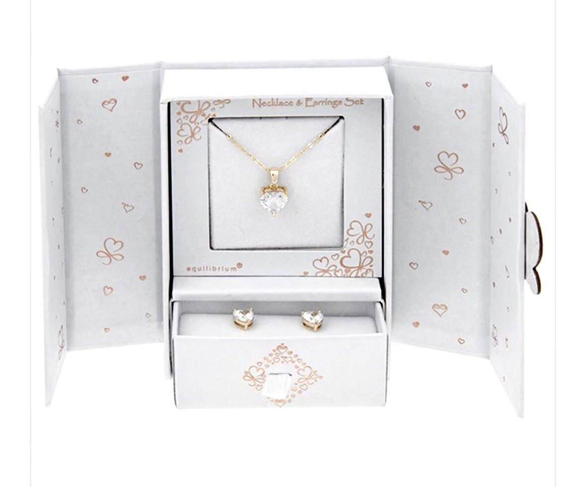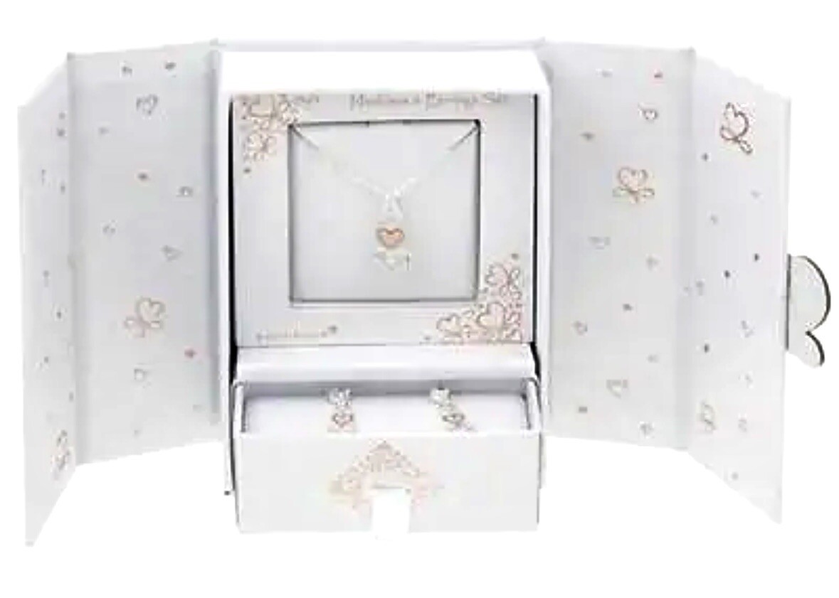 Valentines Necklace Earrings Jewellery Box Gift Set Silver Rose Gold Ladies