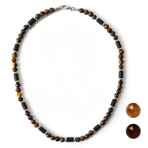 CKDSA Mens Necklace Jewellery Obsidian Tiger Eye Valentines Day Beaded Necklace for Men Women Crystal Round Stone Bead Gemston Anxiety for Dad Birthday Boyfriend Present Gifts for Her from Husband