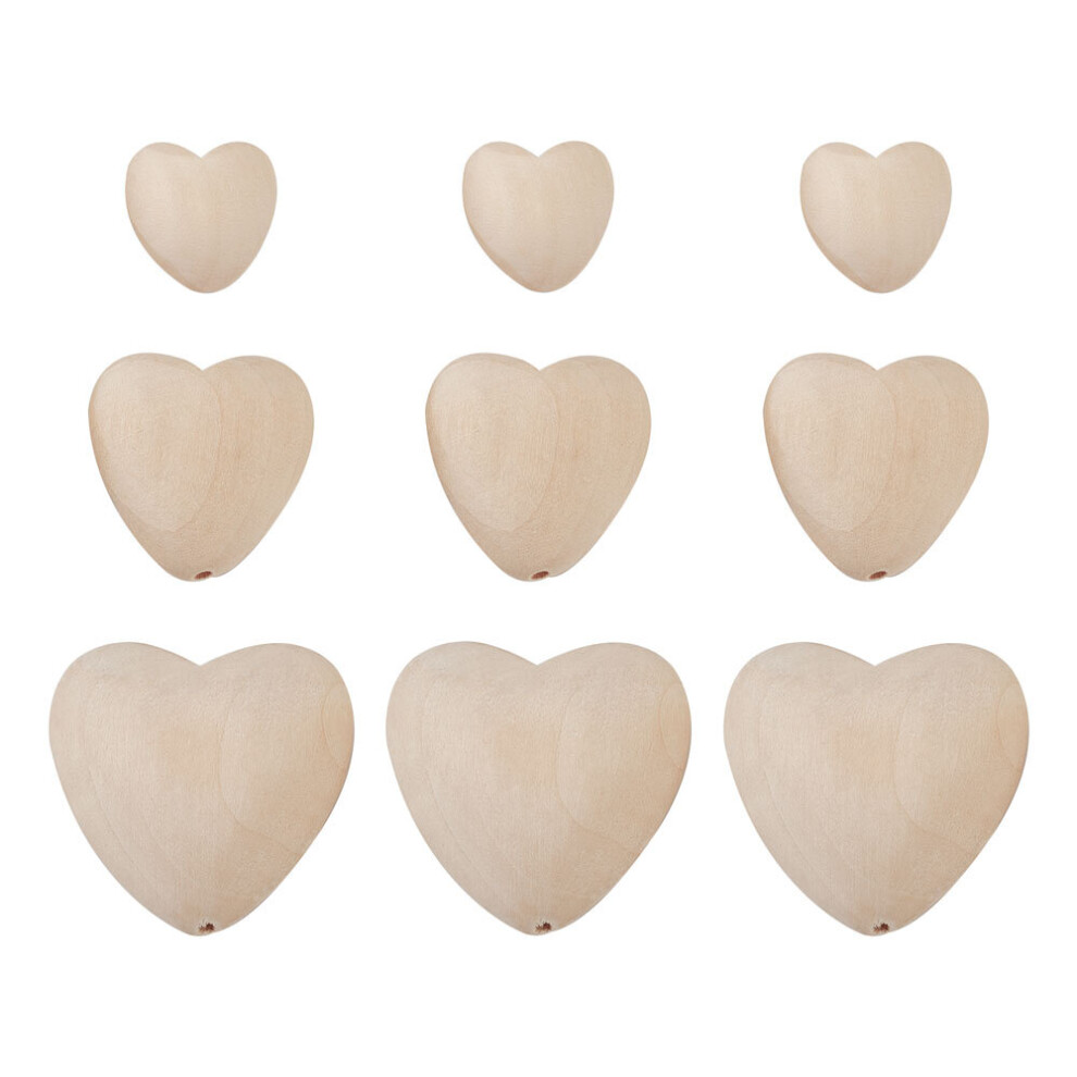 60pcs Natural Wood Beads Love Heart Wooden Spacer Charm Beads for Jewelry Making Valentines Bracelet Necklace DIY Crafts 20-40mm