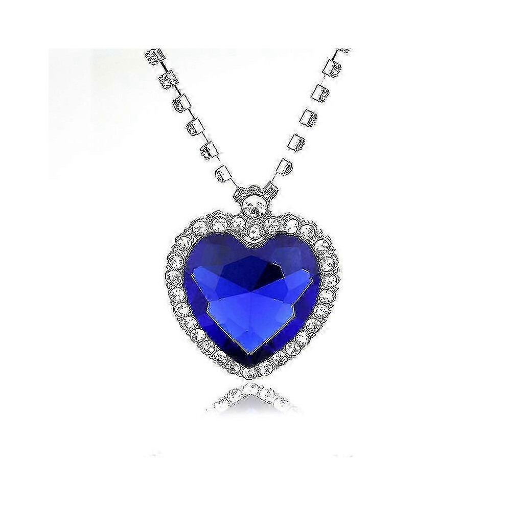 (As show, One size) Fashion Crystal Pendant Necklace Heart Of The Ocean Necklace Valentines Gift,blue