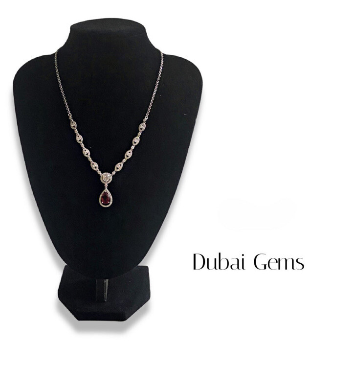 White gold finish red ruby and created diamond pearcut necklace valentines gift