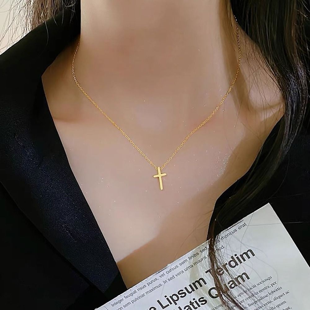 Adjustable Chain Cross Pendant Titanium Steel Necklace Valentines Gift