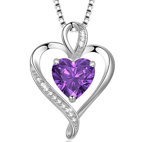 LAVUMO Heart Necklace for Women Real 925 Sterling Silver Love Cubic Zirconia Pendant Brithstone Necklace Valentines Birthday Jewellery Gifts for Women Wife (Silver-02-Amethyst)