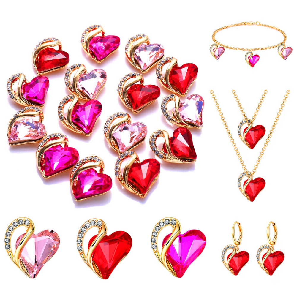 Valentines Heart Earrings Necklace Jewellery Gift Set Silver Diamanté Ladies