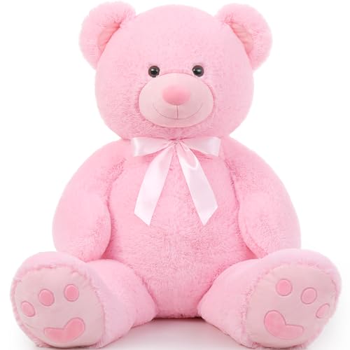 MorisMos Giant Pink Teddy Bear for Girls, 120cm Big Bear Plush Stuffed Animal Soft Toy Cuddly Large XXL, Kawaii Presents for Girlfriend Kids Valentines Day Birthday Party Decorations