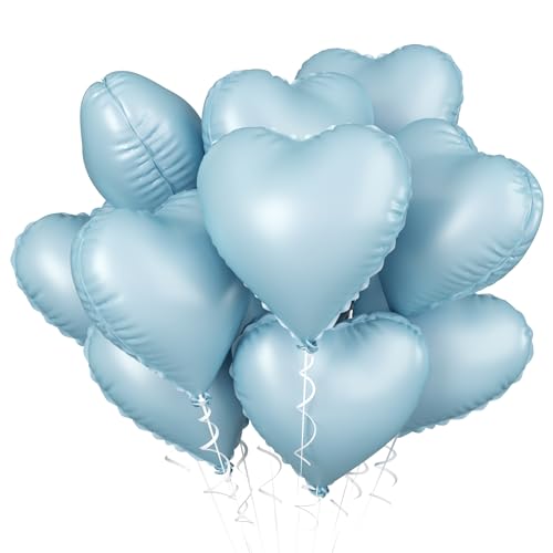 Blue Heart Balloon, 10PCS Blue Foil Balloons, 18inch Heart Shape Balloons Helium Birthday Party Decorations for Brithday Party, Valentines Day, Wedding, Anniversary