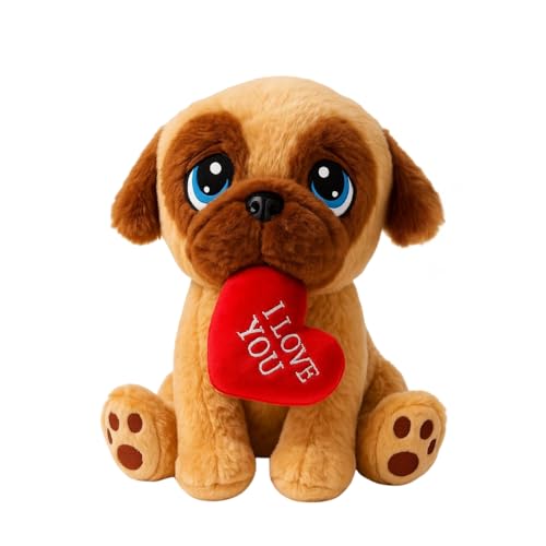 25 centimeters Puppy Face Plush Toy with Red Heart – “I Love You” Plush Soft Toy | Cute Valentine’s Day Present for Her/Him | Anniversary, Birthday & Romantic Present