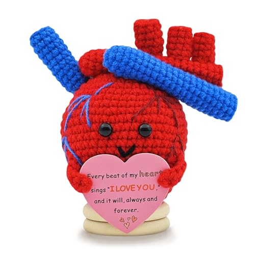 POPNANA Gifts for Her Him Boyfriend Girlfriend Handmade Christmas Birthday Gift for Women Men Positive Crochet Heart Funny Valentines Day Anniversary Wedding Romantic Present for Husband Wife Couples