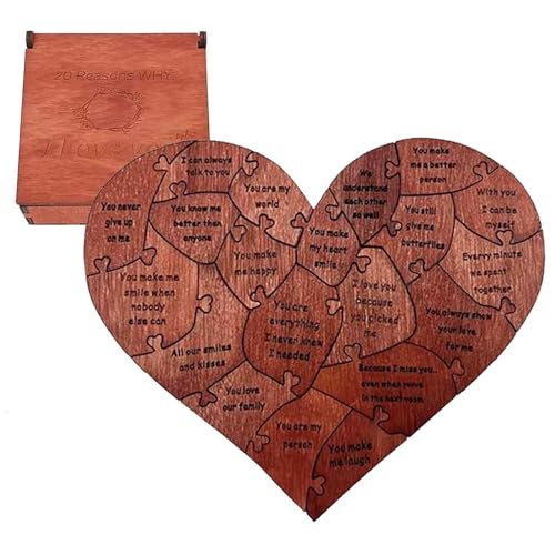 Valentines Gifts for Him, Her - 20 Reasons Why I Love You Heart Puzzle With Gift Box, Anniversary Birthday Valentine Present for Wife, Husband, Fiance, Romantic I Love You Plaque