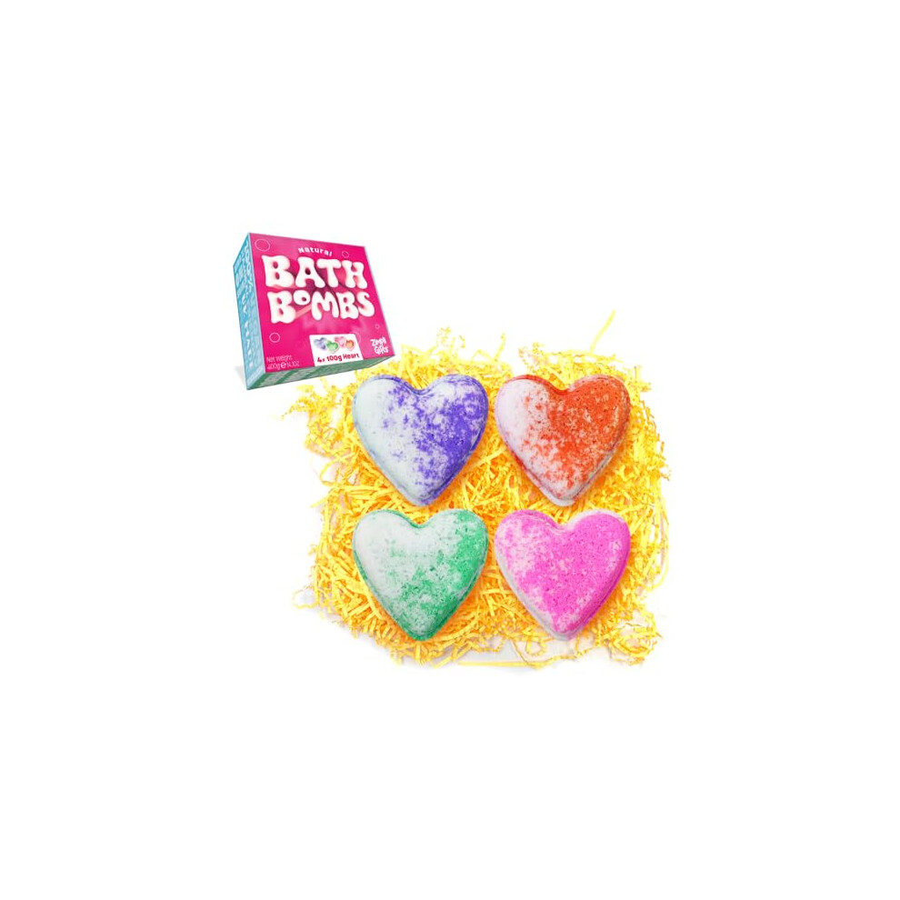 4 x Large Love Heart Bath Bombs Gift Set, Ideal Valentines Day Present for Her, Women, Girlfriend, Wife, Xmas Stocking Filler, Beauty Spa Fizzers