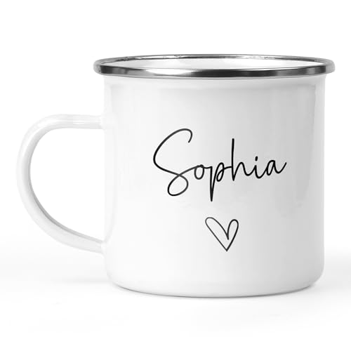 Personalised Enamel Mug with Name & Heart, Custom Valentines Day Gift, Valentine's Day Mug, Galentines Day Present, Gift for Her, Girlfriend Gift, Wife, Cup