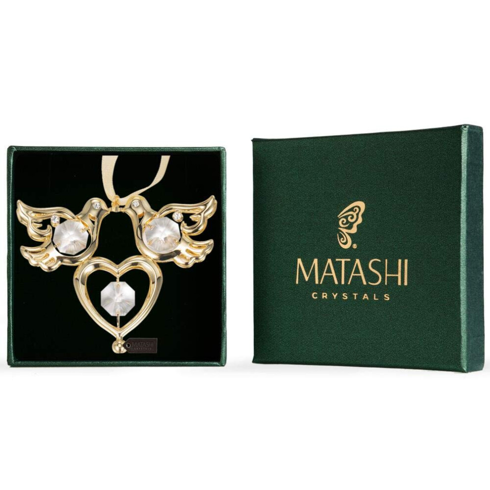 Matashi 24K Gold Plated Crystal Studded Home Decorative Showpeice Love Doves Birds Hanging Ornament Crafted for Valentine's Day - Present for Her