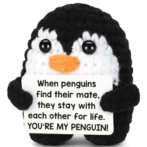 Gifts for Her from Husband, Handmade Crochet Emotional Mini Funny Penguin, Romantic Birthday Wedding Anniversary Valentines Gifts for Women, Wife, Small Cute Decor Present for Her
