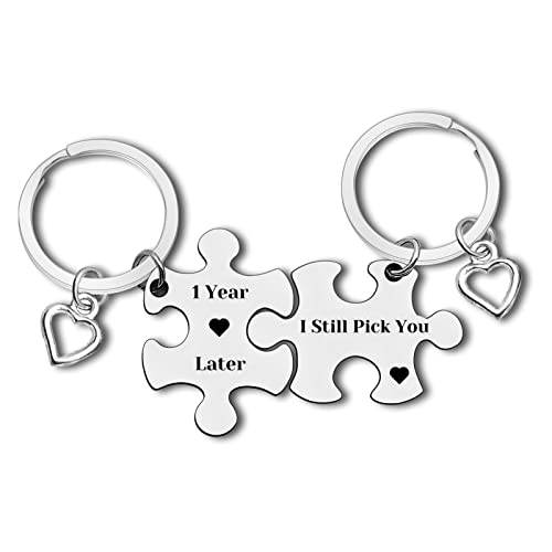 1 Year Anniversary Keychain Gifts for Girlfriend Boyfriend Anniversary Present Gifts for Her Him 1 Year Later I Still Pick You Puzzle Keyring Couple Jewelry Wedding Keyring Birthday Valentines Gift