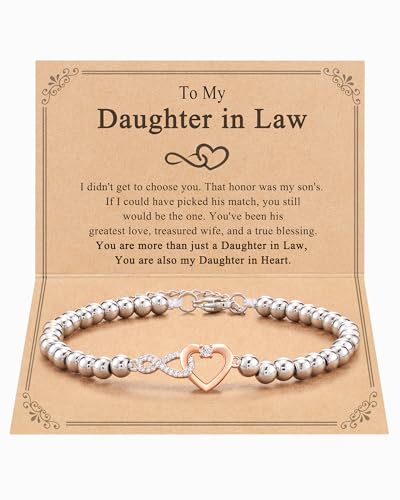 POWWA Daughter in Law Gifts, Valentines Gifts for Her Ladies Birthday Gifts Present Infinity Bracelet Cards for Women Her Christmas Xmas Stocking Fillers