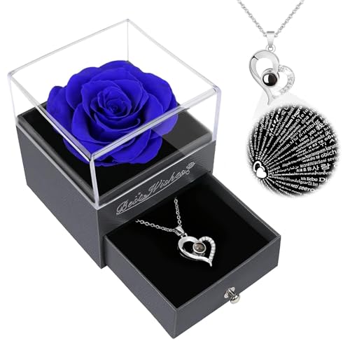 Childom Birthday Gift for Women,Blue Preserved Flowers Rose Gifts for Mum,Christmas Rose Gifts For Women Her Friend,Romantic Valentines Present for Teacher Wedding Anniversary Engagement Graduation