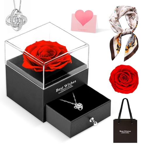 Childom Birthday Gift for Women,Red Preserved Flowers Rose Gifts for Mum,Christmas Rose Gifts For Women Her Mum Friend,Romantic Valentines Present for Teacher Wedding Anniversary Engagement Graduation