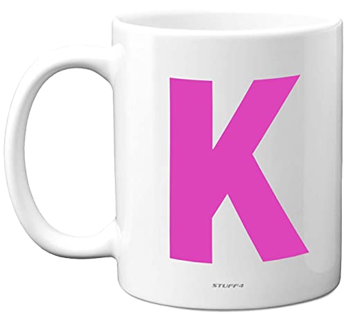 Stuff4 Personalised Alphabet Pink Initial Mug - Letter K Mug, Gifts for Her, Mothers Day, Birthday Gift for Mum, 11oz Ceramic Dishwasher Safe Anniversary, Valentines, Christmas Present, Retirement