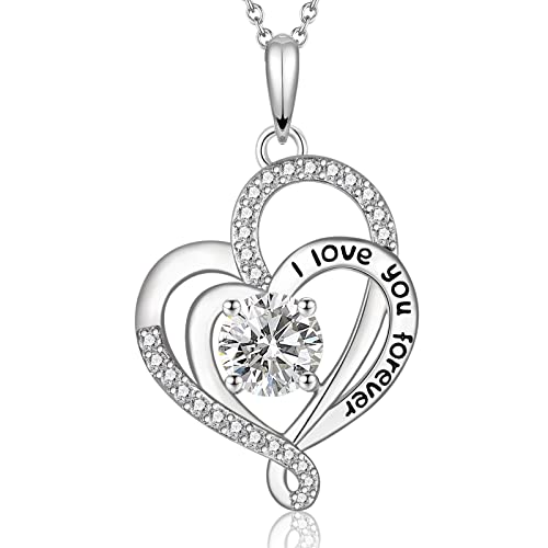 VOSAP Gifts for Wife, S925 Sterling Silver Necklace for Wife, I Love You Forever Heart Pendant Jewellery Present, Romantic Gifts for Her on Christmas Valentines Day Anniversary Birthday