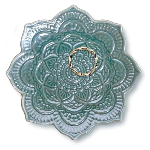 Titanape Small Green Mandala Trinket Dish Jewellery Tray, Ceramic Decorative Ring Holder Dish, Gifts for Women, Friend, Mum, Girls, Her, Birthday Christmas Valentines' Mothers' Day Present