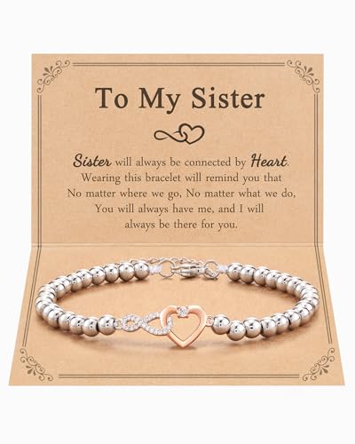 POWWA Sister Gifts, Sister Christmas Gifts Infinity Bracelet Present for Women Her Adults Christmas Xmas Birthday Valentines