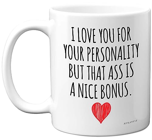 Stuff4 Anniversary Mugs for Her - I Love You Ass Bonus Mug - Funny Birthday Gifts for Girlfriend Wife Partner from Boyfriend Husband Valentines Present, 11oz Ceramic Dishwasher Safe Mugs