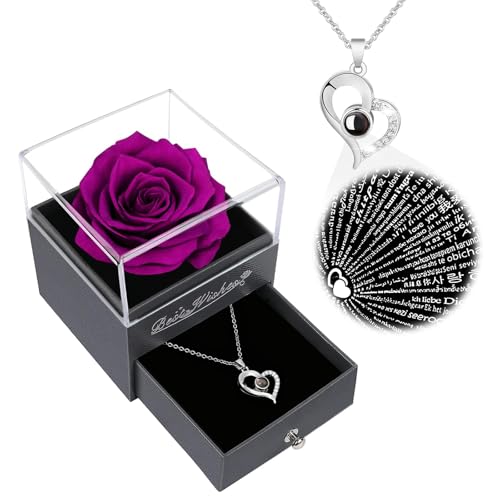 Childom Birthday Gift for Women,Purple Preserved Flowers Rose Gifts for Mum,Christmas Rose Gifts For Women Her Friend,Romantic Valentines Present for Teacher Wedding Anniversary Engagement Graduation