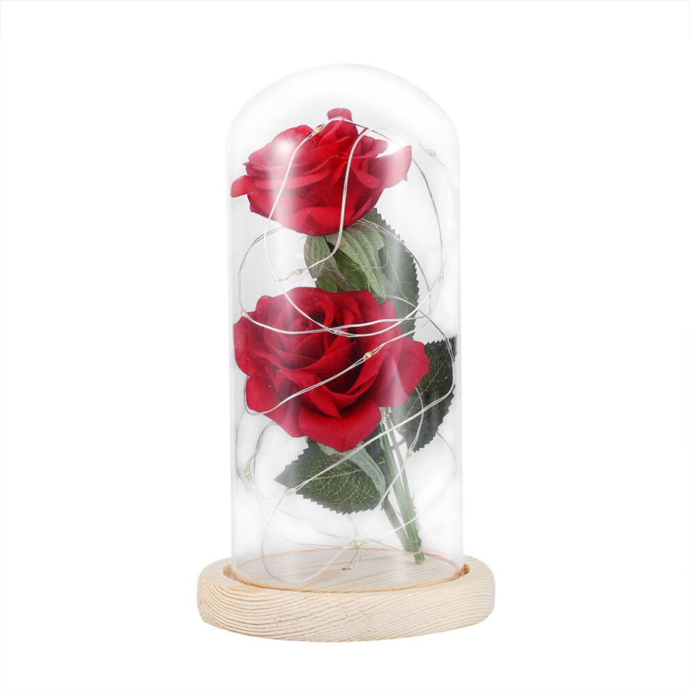 Romantic Gesture, 8Cm & 25Cm Red Rose Under Glass Dome With Led Fairy Lights, Beauty And The Beast Rose Gift, Valentine's Day Present For Her