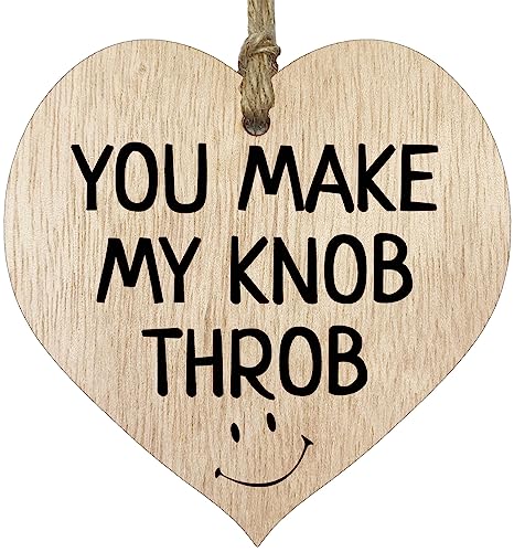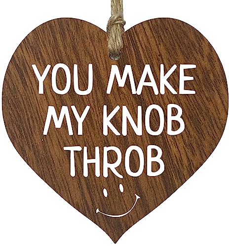 Funny Anniversary Present for Her - You Make My Knob Throb - Hanging Wooden Heart Sign Plaque, Rude Valentines Gifts for Girlfriend Wife Light Wood Hearts, Romantic I Love You Gifts for Women