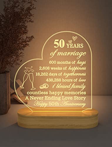 Anniversary Wedding Gifts for Him/Her, I Love You Night Light 3D Illusion Lamp for Couple Wife Husband Romantic Valentines Wedding Present (50th)