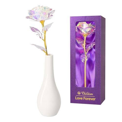 Childom Birthday Gifts for Women,Christmas Rose Gifts For Women Her Mum,Rainbow Rose Flower With Vase,Valentines Present,Purple Flowers for Grandma Wife Girl Anniversary Christmas Wedding Engagement