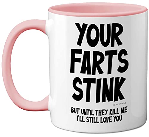 Funny Valentines Gifts for Him - Your Farts Stink Mug - Funny Mugs for Men, Birthday Gifts Boyfriend Husband Dad, Joke Novelty Present, I Love You Daughter Son Wife, 11oz Pink Ceramic
