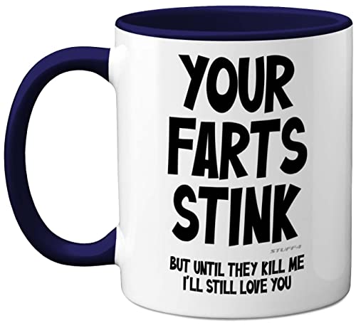 Funny Valentines Gifts for Him - Your Farts Stink Mug - Funny Mugs for Men, Birthday Gifts Boyfriend Husband Dad, Joke Novelty Present, I Love You Daughter Son Wife, 11oz Navy Blue Ceramic