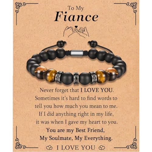 KORAS Fiance Gifts for Him, Tiger Eye Black Onyx Stone Bracelet, Fiance Present for Valentines Day Anniversary Birthday Christmas