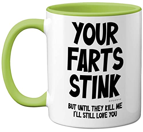Funny Valentines Gifts for Him - Your Farts Stink Mug - Funny Mugs for Men, Birthday Gifts Boyfriend Husband Dad, Joke Novelty Present, I Love You Daughter Son Wife, 11oz Green Ceramic