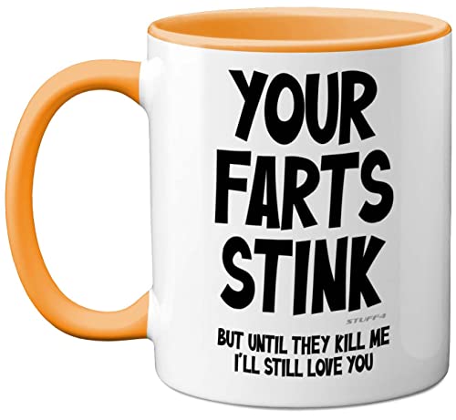 Funny Valentines Gifts for Him - Your Farts Stink Mug - Funny Mugs for Men, Birthday Gifts Boyfriend Husband Dad, Joke Novelty Present, I Love You Daughter Son Wife, 11oz Orange Ceramic