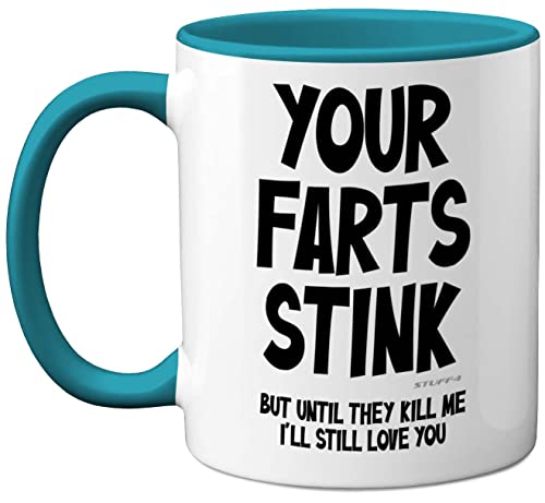 Funny Valentines Gifts for Him - Your Farts Stink Mug - Funny Mugs for Men, Birthday Gifts Boyfriend Husband Dad, Joke Novelty Present, I Love You Daughter Son Wife, 11oz Light Blue Ceramic