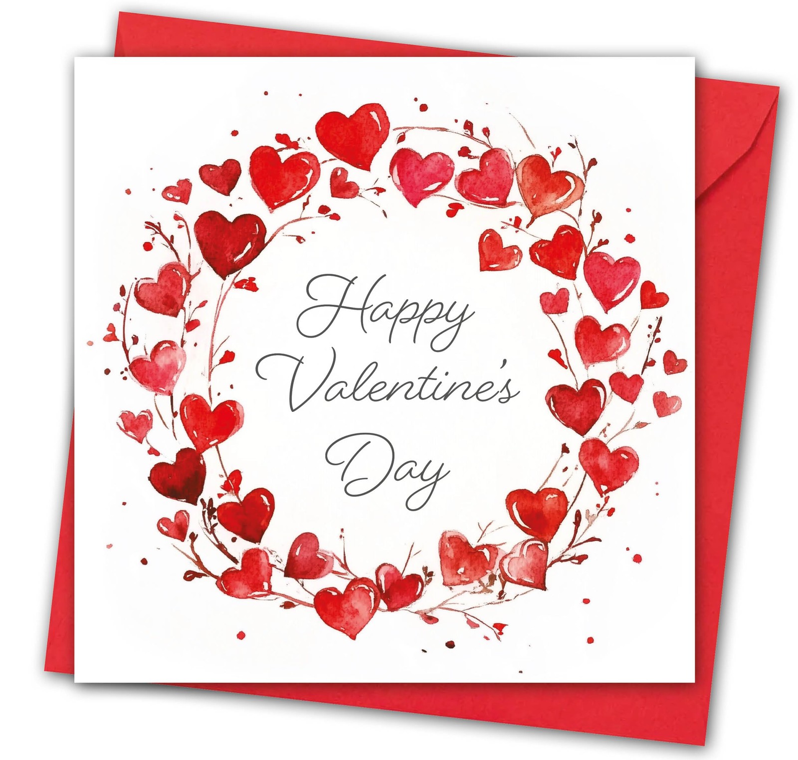 Valentines Card. Wreath Design. Eco-friendly. 148mm Square. 150x150mm, Yes