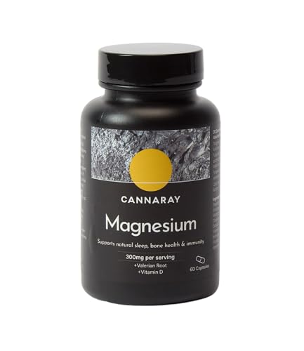 CANNARAY Magnesium Capsules 300mg with Added Valerian Root and Vitamin D. Supports Natural Sleep and Immunity