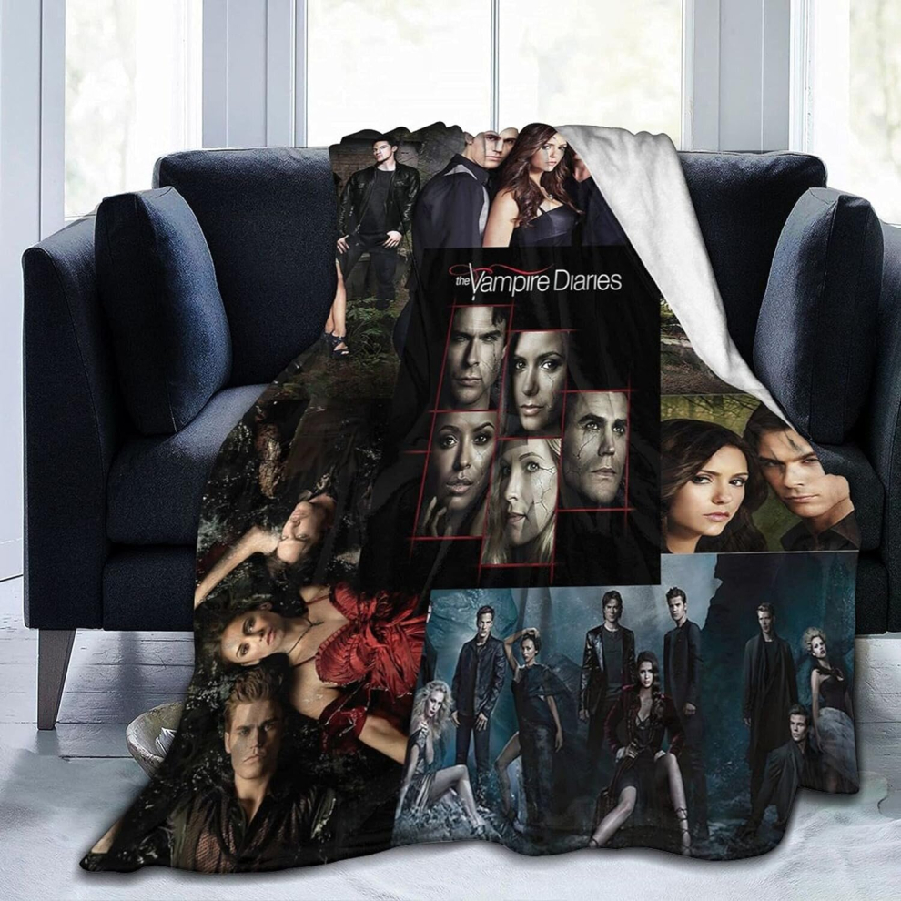 (125CM X 150CM) The Vampire Diaries Print Theme Fleece Reversible Cozy Throw Blanket Suitable for Bedding Sofas All Season-Vampire Diary2