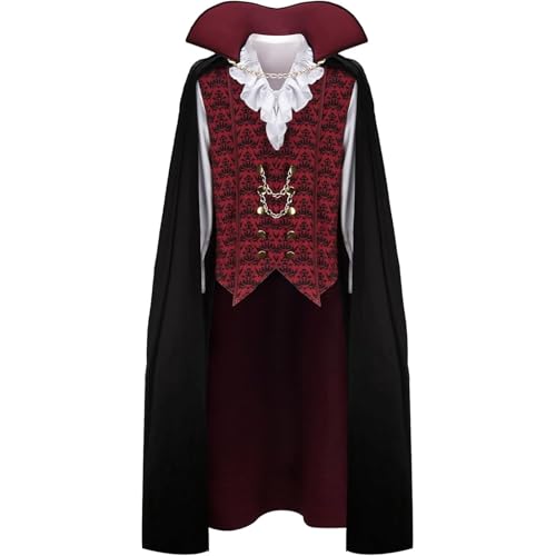 Generisch Adult Men's Devil Vampire Costume Shirt Cape Outfit Medieval Renaissance Victorian Gothic Cosplay Long Cape Dress Up Outfits Festival Accessories Fancy Dress Costumes