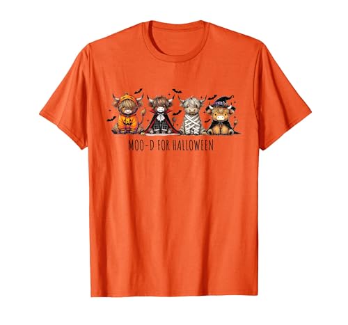 Cute Highland Cow Halloween Costume Pumpkin Witch Vampire T-Shirt, Men, Orange, Small