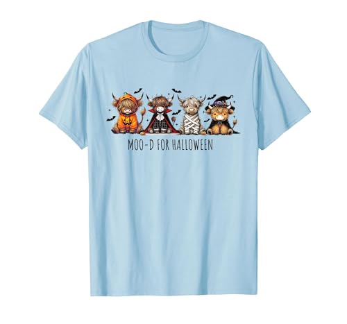 Cute Highland Cow Halloween Costume Pumpkin Witch Vampire T-Shirt, Men, Baby Blue, Large