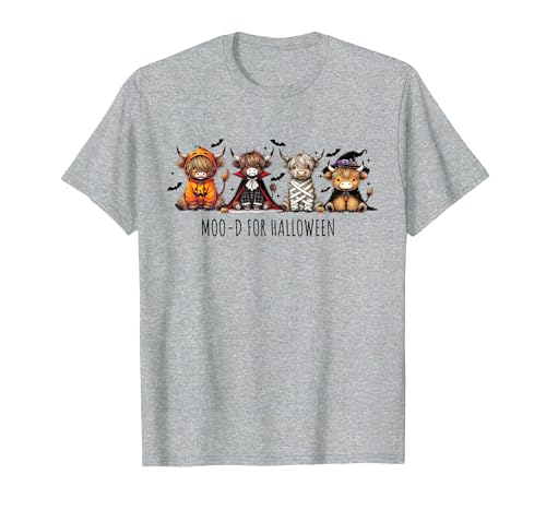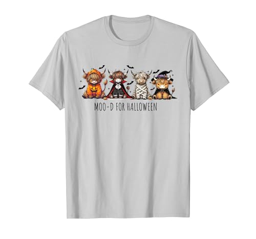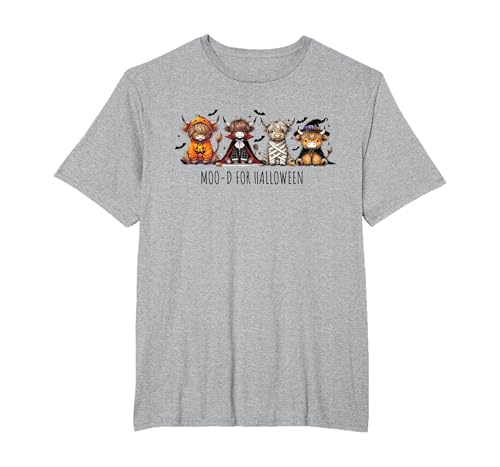 Cute Highland Cow Halloween Costume Pumpkin Witch Vampire T-Shirt, Men, Silver Grey, Medium