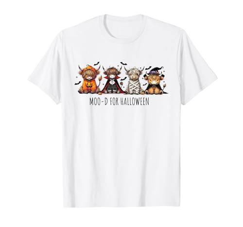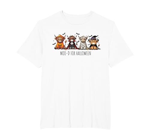 Cute Highland Cow Halloween Costume Pumpkin Witch Vampire T-Shirt, Men, White, Medium