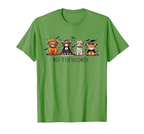 Cute Highland Cow Halloween Costume Pumpkin Witch Vampire T-Shirt, Men, Grass Green, Medium