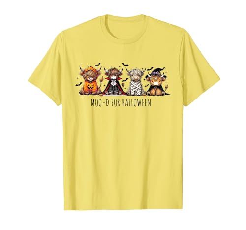 Cute Highland Cow Halloween Costume Pumpkin Witch Vampire T-Shirt, Men, Lemon Yellow, Medium